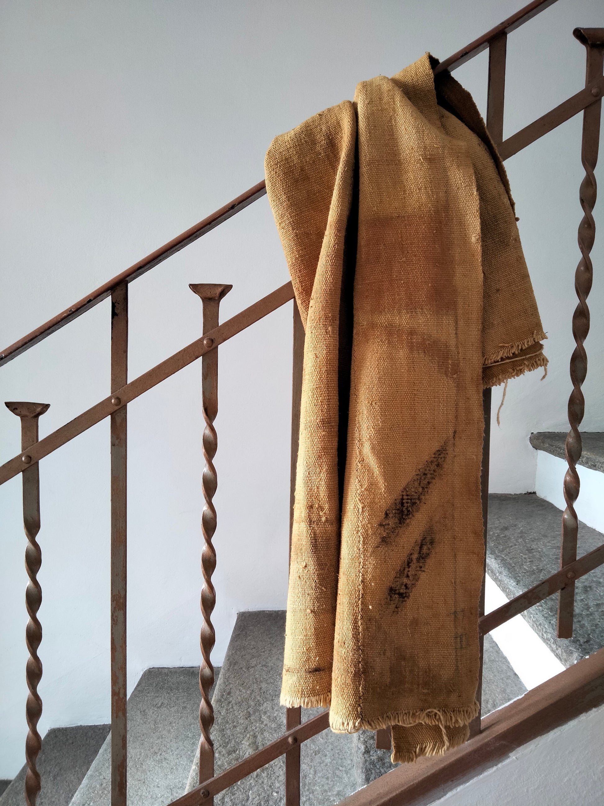 Il tessuto è quindi decorato con il fango che viene raccolto dal letto dei fiumi e lasciato fermentare fino ad un anno in giare di argilla.