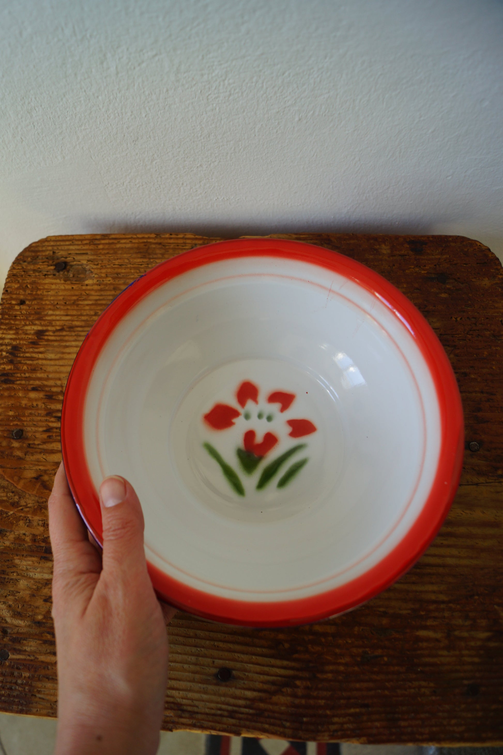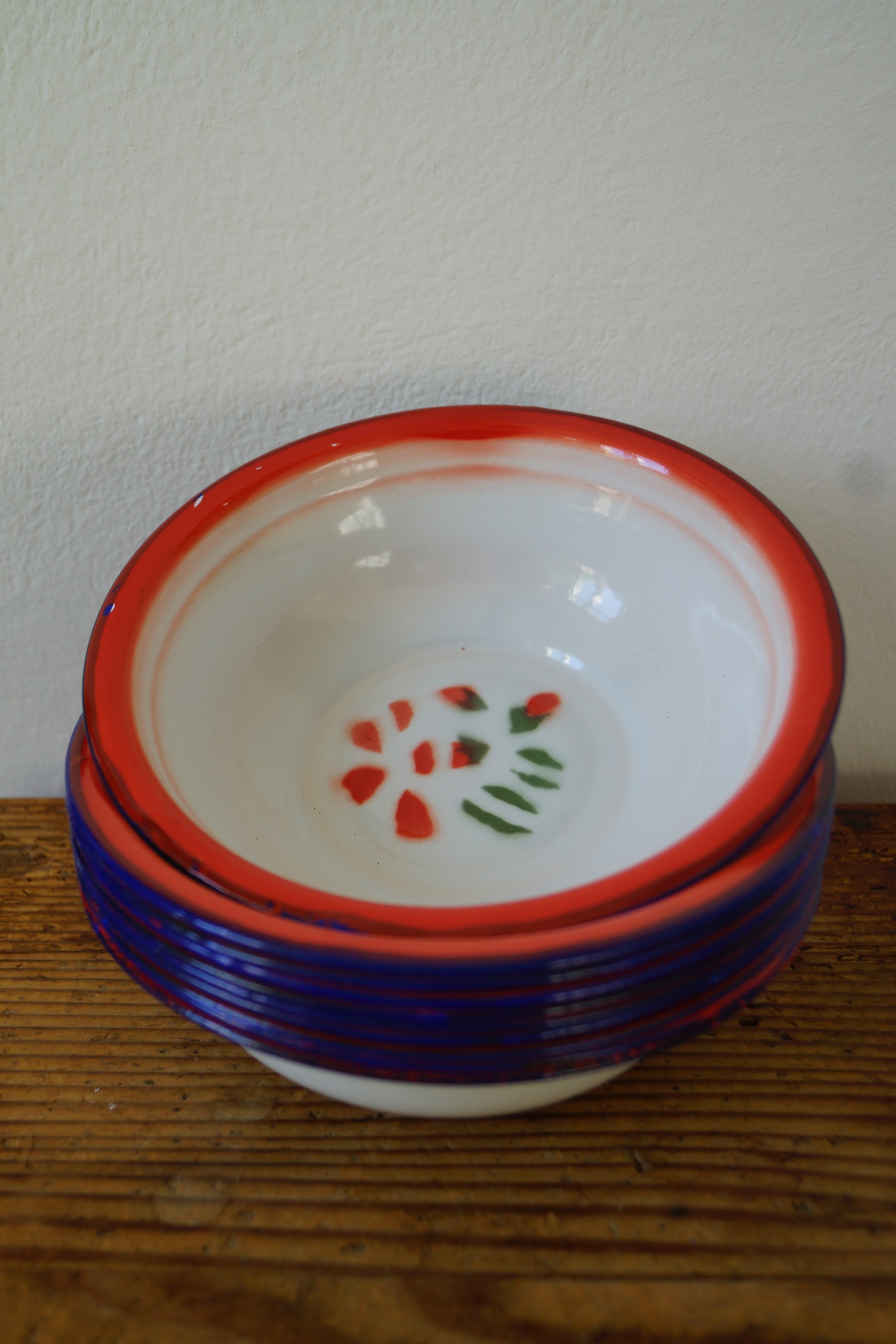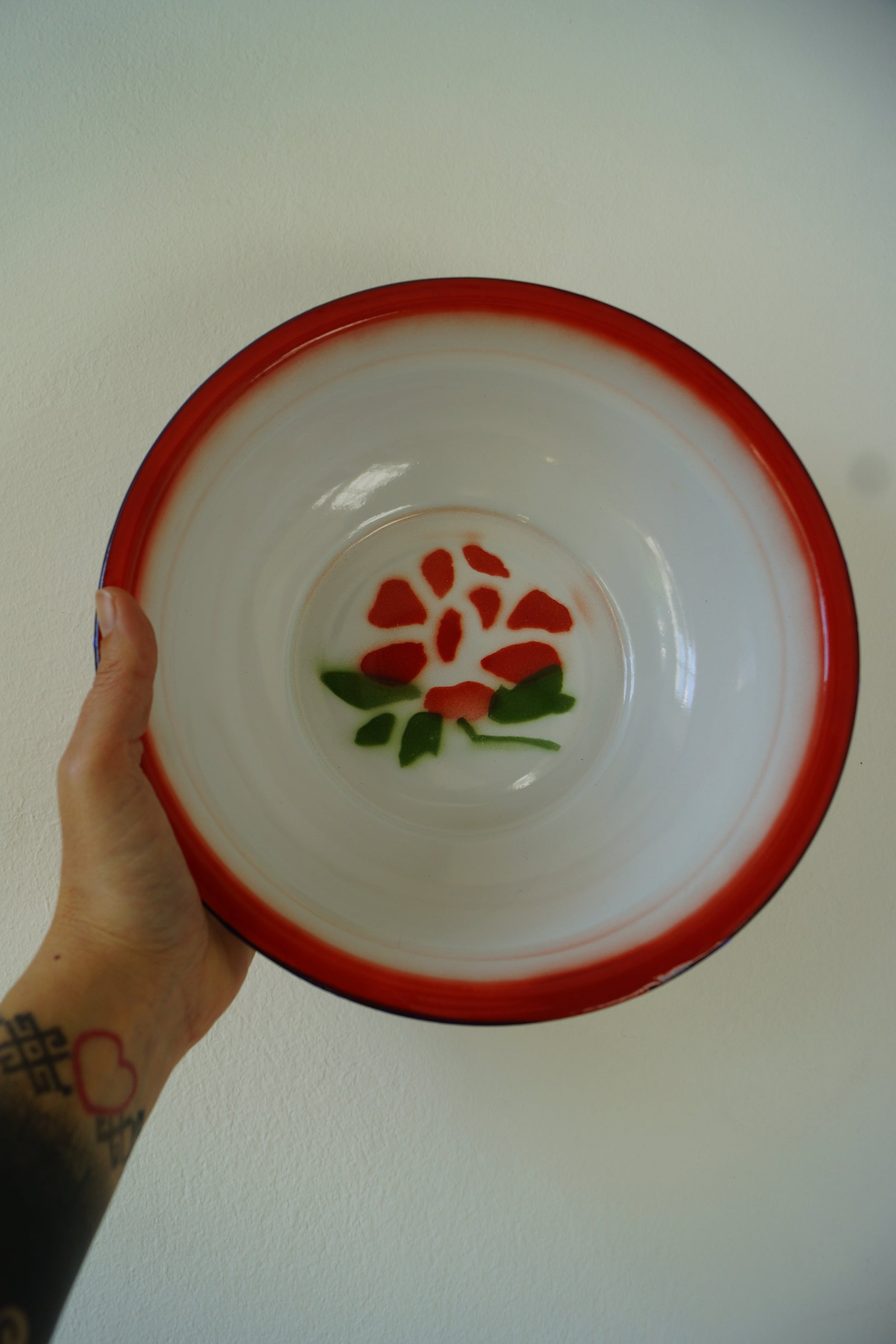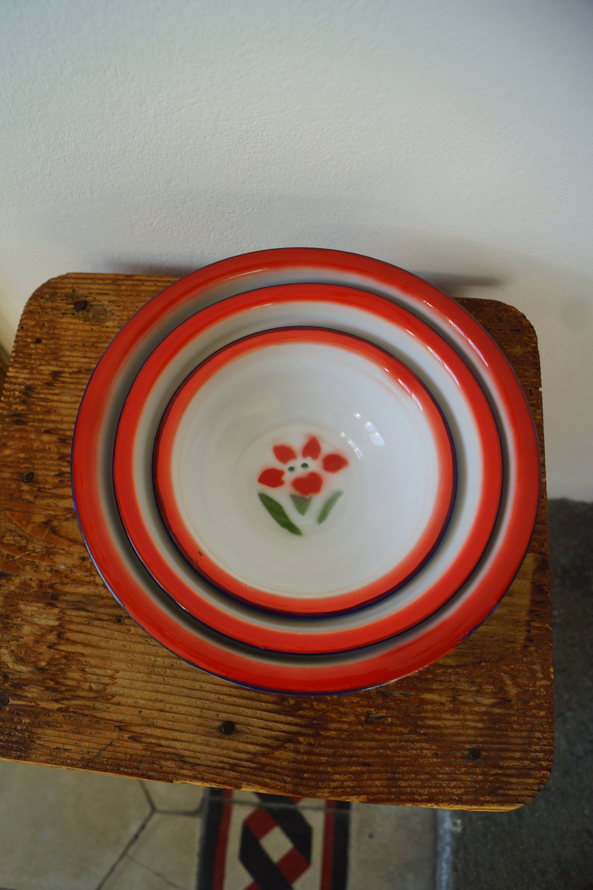 Ciotole in metallo smaltato con tipiche decorazioni floreali, in tre misure.
