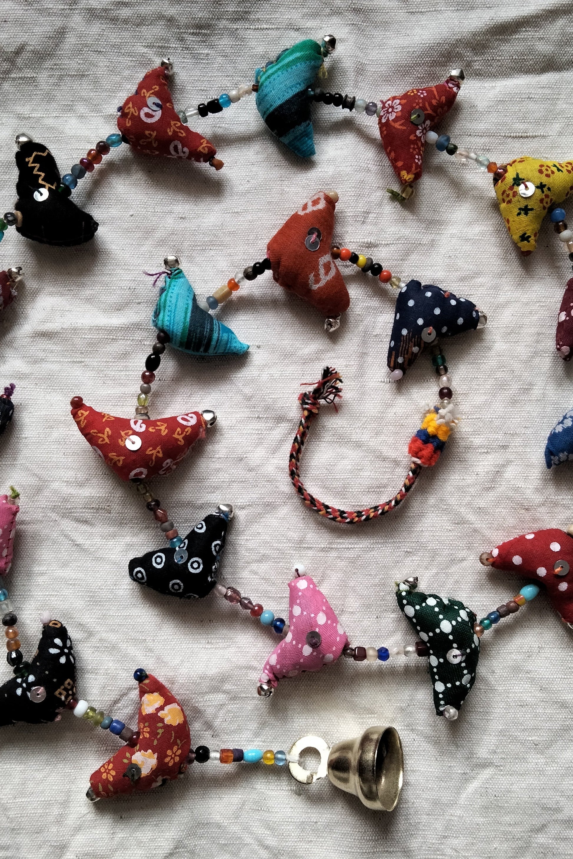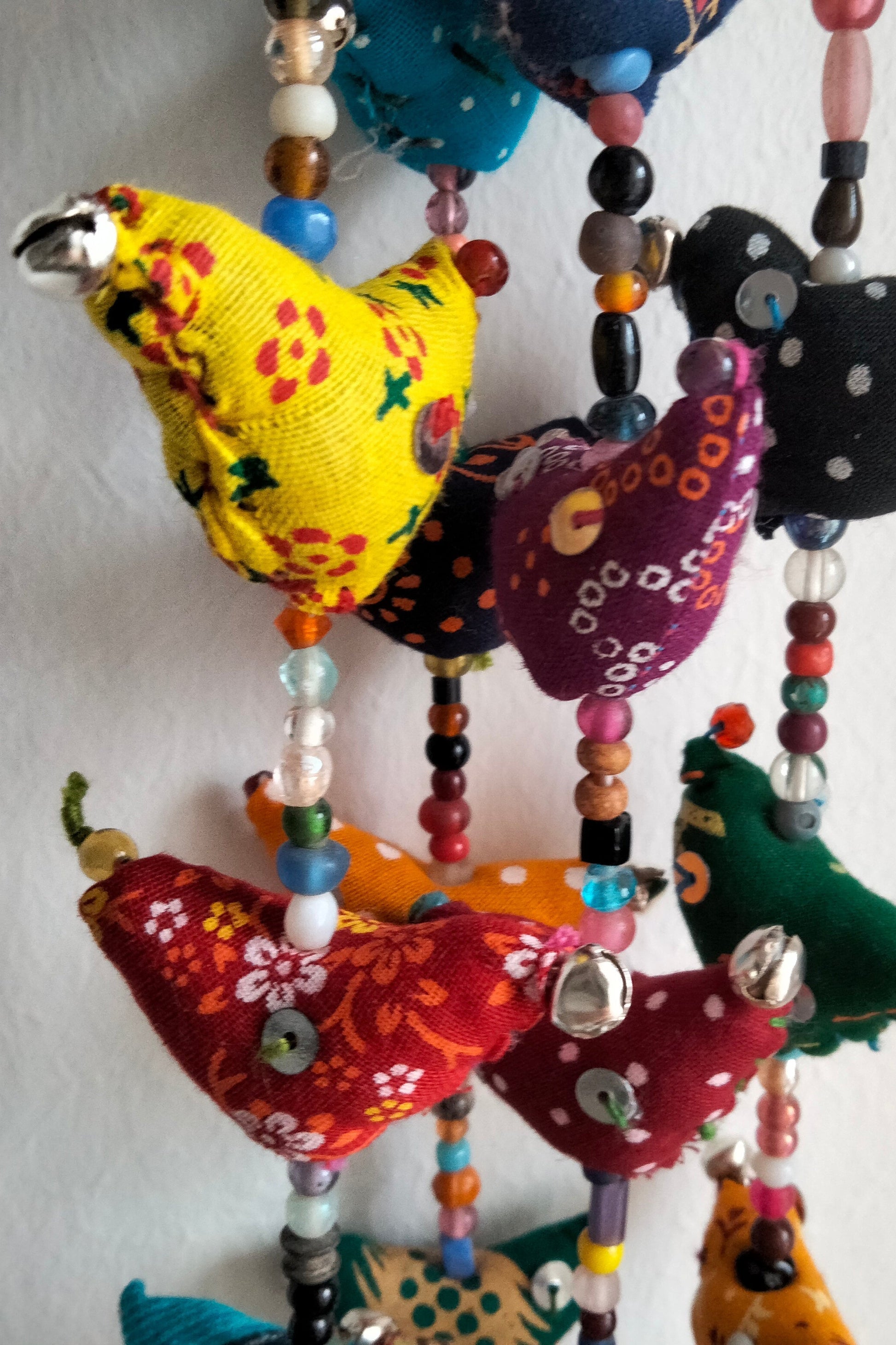 Ghirlanda di uccellini colorati con campanella.