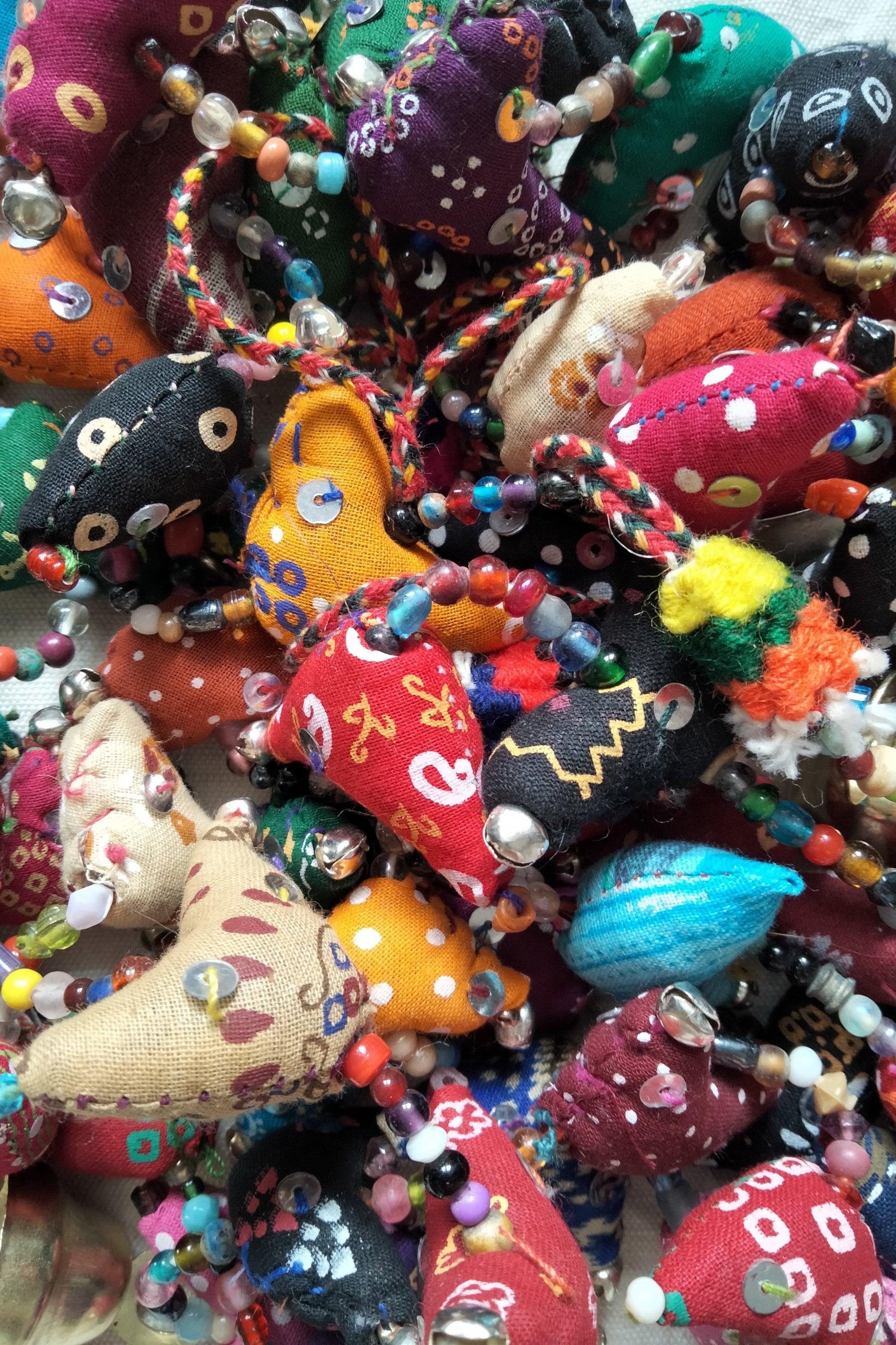 Materiali: cotone, perline in vetro, metallo
