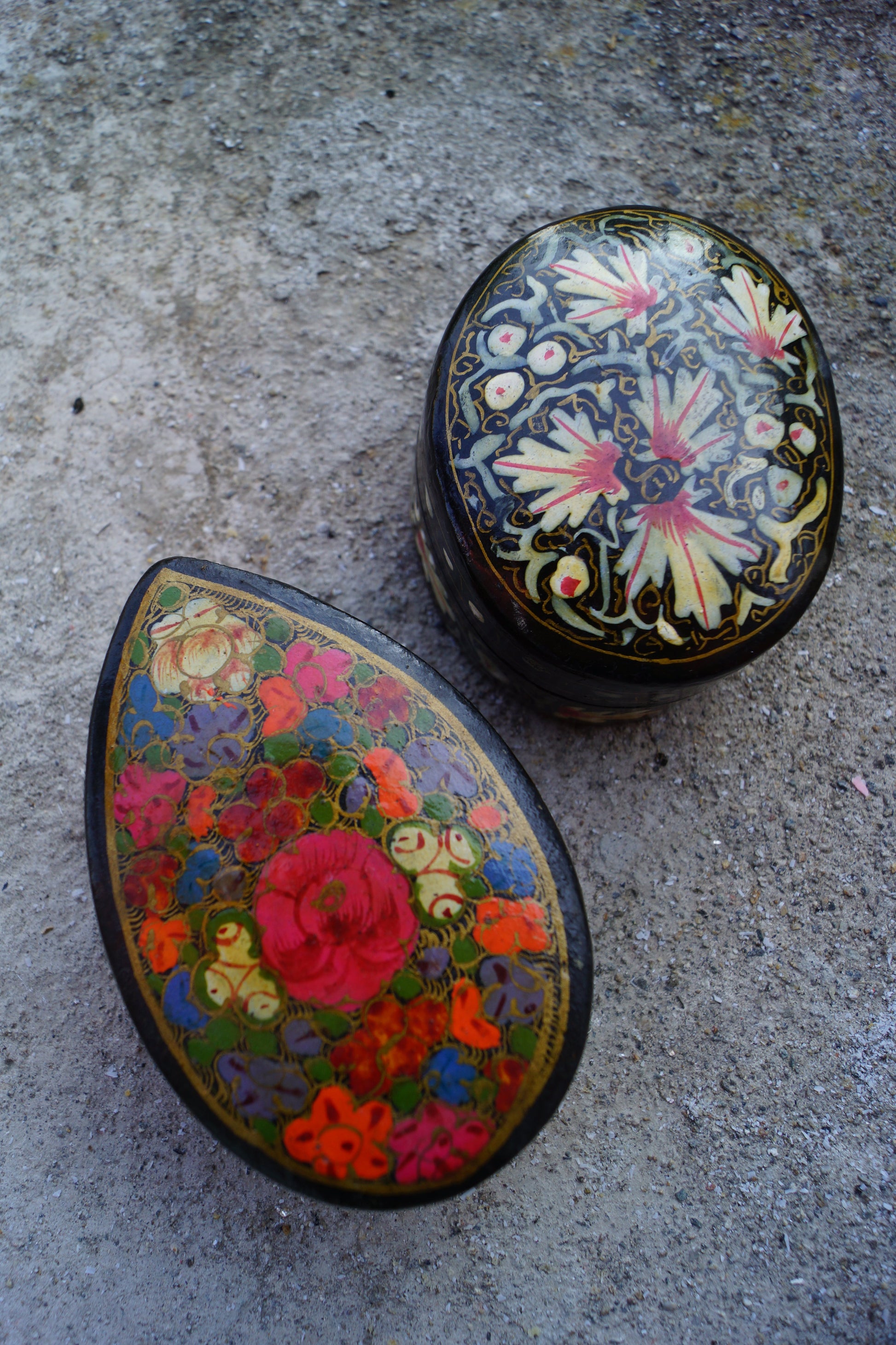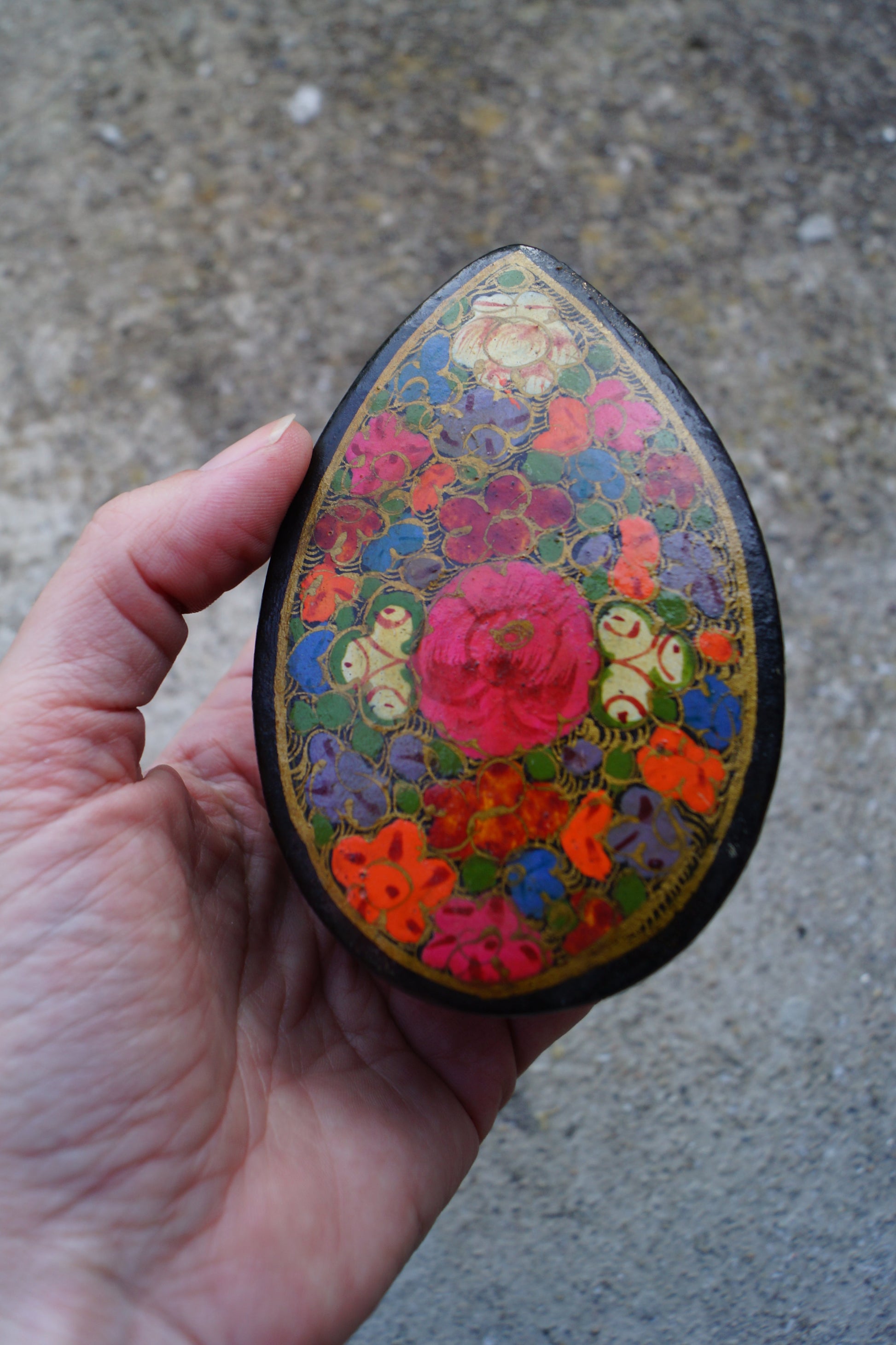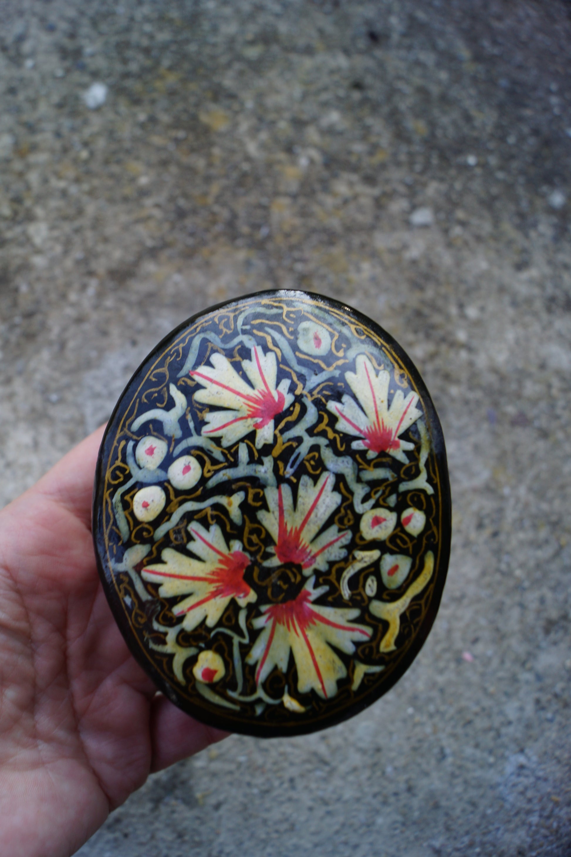 Scatolina portagioie in cartapesta dipinta a mano con i tipici disegni del Kashmir.