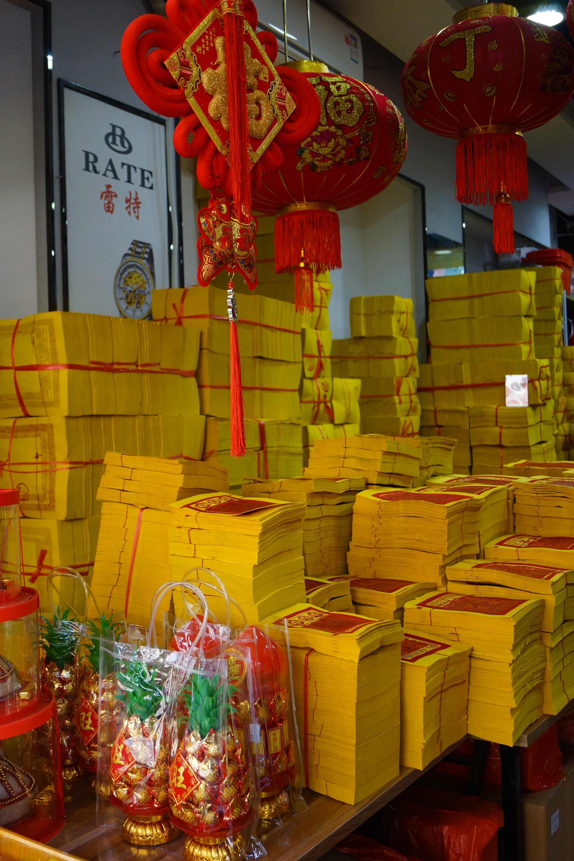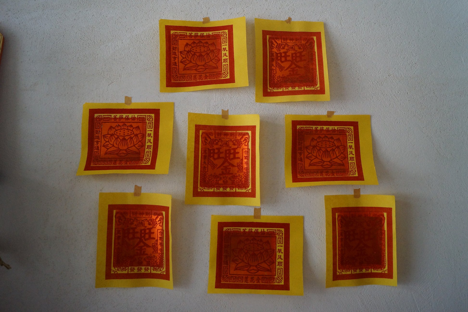 Comunemente chiamate 'denaro antenato' queste illustrazioni in carta nella cultura taoista cinese vengono bruciate durante i rituali legati agli antenati.